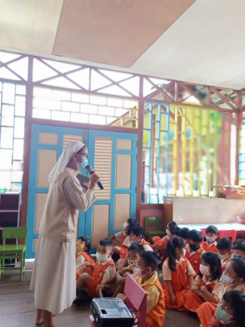 Bina Iman Anak bersama Suster Yosephine, anak-anak sangat senang mendengar cerita dan bermain game