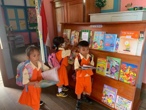 Slogan buku adalah jendela dunia merupakan bukti bahwa segala informasi yang diperlukan dapat diperoleh melalui kegiatan membaca. Selain adanya Pojok Baca sekolah, di setiap sudut kelas juga telah disediakan pojok baca, serta buku-buku bergambar yang menarik minat anak untuk membaca juga telah tersedia. Bahkan pendidik juga rutin membacakan cerita untuk peserta didik sebelum memulai kegiatan dan dilanjutkan dengan tanya jawab untuk mengukur pemahaman anak mengenai cerita yang telah dibacakan